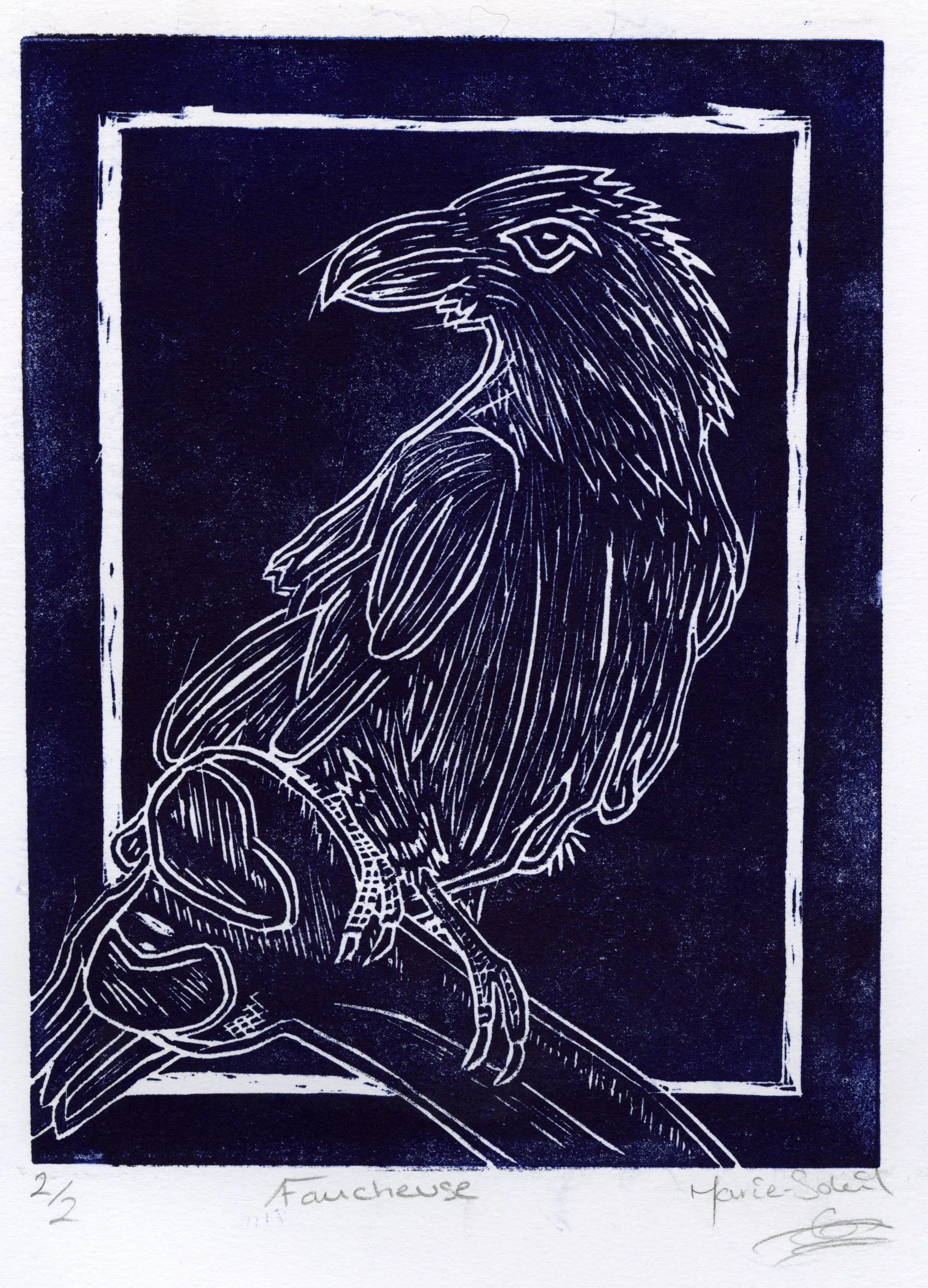 Cette impression a été créée à partir d'une gravure faite sur un linoléum.